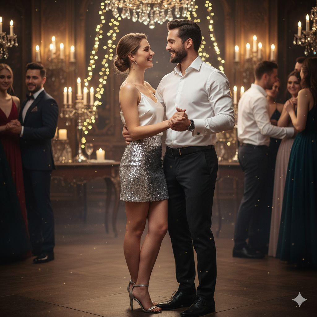 • Dla Niego: On stanowi idealne, stonowane tło dla Twojego blasku. Kluczem jest tu nienaganna jakość. Świetnie skrojona, biała koszula z ukrytą plisą guzikową zawsze robi wrażenie. Do tego ciemne spodnie typu “chino” lub eleganckie jeansy bez przetarć. Jego “błyskiem” będzie minimalistyczny zegarek na metalowej bransolecie lub dyskretne spinki do mankietów.
